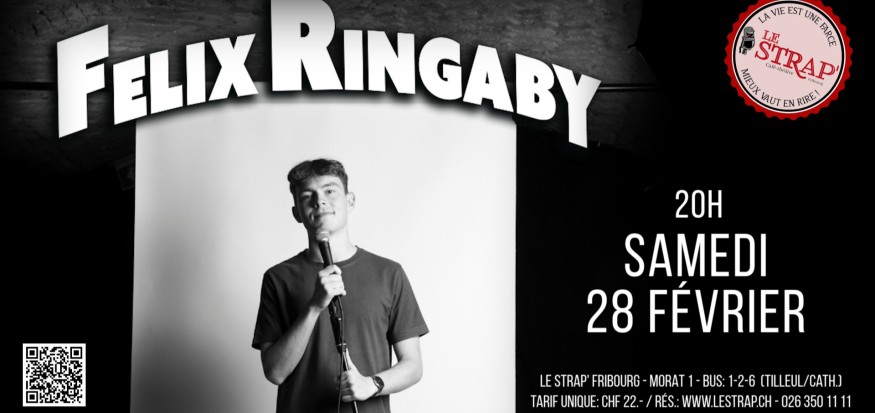 Félix Ringaby, 22 ans, est la nouvelle pépite du stand-up suisse romand. Flegmatique mais incisif, il a fait partie de la Clique du Caustic Comedy Club, la troupe résidente du lieu. Après une saison d’écriture et de test, il se lance avec sa première heure solo en rodage.