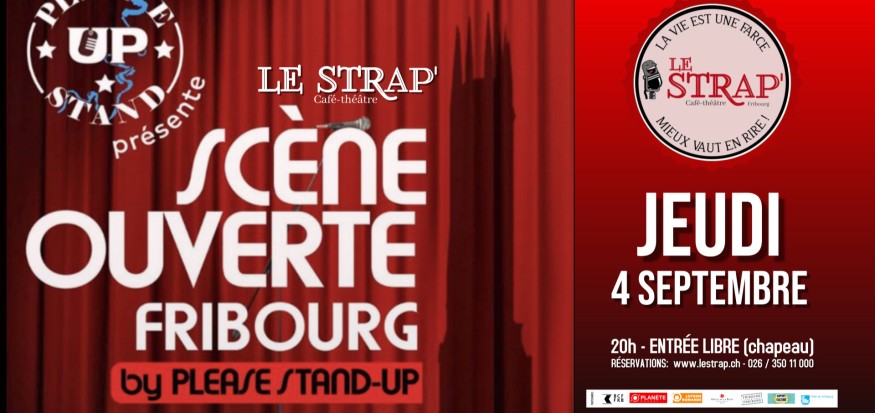 Ils ont sept minutes pour convaincre et... revenir! Une belle brochette d'humoristes en herbe ou confirmés viennent tester leurs vannes dans une ambiance bon-enfant. Les meilleurs seront ré-invité lors d'une prochaine soirée. Venez découvrir le vivier du STRAP' et peut-être direz-vous un jour: «Celui-là, je l'ai vu à ses débuts!»