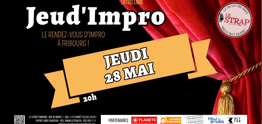 Chaque dernier jeudi du mois, le rendez-vous incontournable de l'improvisation en ville de Fribourg. Rires garantis. On sait comment ça commence, jamais comment ça finit...