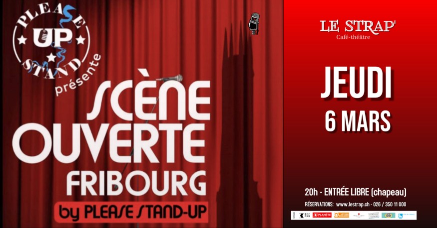Ils ont sept minutes pour convaincre et... revenir! Une belle brochette d'humoristes en herbe ou confirmés viennent tester leurs vannes dans une ambiance bon-enfant. Les meilleurs seront ré-invité lors d'une prochaine soirée. Venez découvrir le vivier du STRAP' et peut-être direz-vous un jour: «Celui-là, je l'ai vu à ses débuts!»