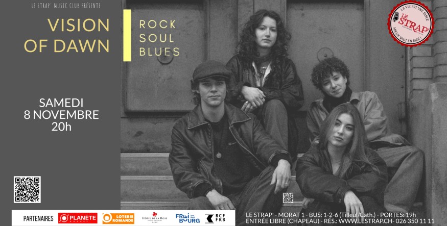 Les Bullois·es de Vision of Dawn aiment le rock et nous on aime Vision of Dawn. Lucie, Blaise, Delia et Xiana reviennent au STRAP' pour ce concert rempli d’émotions et de groove irrésistibles. Rock, soul, blues… un mélange captivant qui promet de vous évader du quotidien et de la routine.