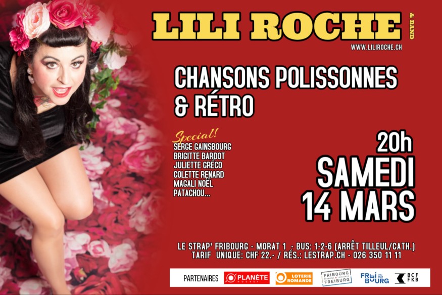 La chanteuse Lili Roche revisite les titres les plus polissons de l’époque avec son répertoire de chansons des années 1930 à 1969. Gainsbourg, Brigitte Bardot, Colette Renard, Juliette Gréc...