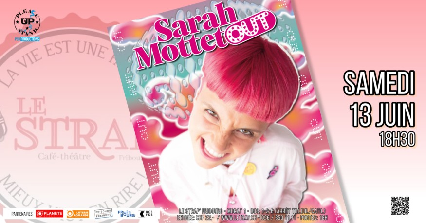 Citoyenne du Wokistan et de Queerland grâce à ses cheveux roses, Sarah Mottet se demande s’il suffit d’avoir l’air woke et queer pour être un bon humain ? Elle rêve d’inclure tout le monde dans son univers coloré, sauf les cyclistes et les régies immobilières. « OUT » c’est le nom définitif de son 1er spectacle, qu’elle a rodé depuis décembre 2025. Cette valaisanne d’origine découvre l’improvisation théâtrale en déménageant à Genève en 2019 pour ses études d’agronomie. Après son diplôme et quelques (longs) mois au Service de l’agriculture du Valais, elle comprend qu’elle préfère la scène aux tableaux Excel et se lance tête baissée dans le stand-up. Aujourd’hui, elle a joué dans des centaines de soirées d’humour, de Genève à Montréal ; chroniqueuse Couleur3 dans l’équipe des « Bras Cassés » et animatrice du Kitsch Comedy ; vous ne pouvez pas la rater !